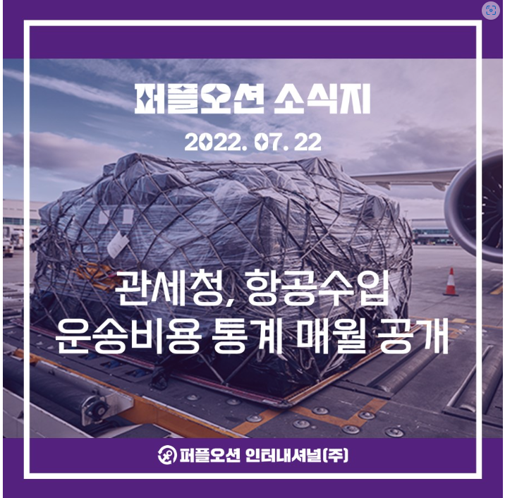 관세청, 항공수입 운송비용 통계 매월 공개(22년 7월)