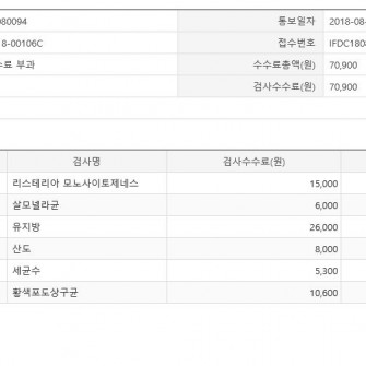 멸균우유 수입 / 검사수수료 내역서 첨부