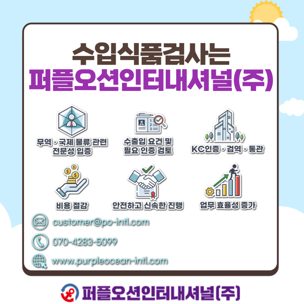 식품안전검사뿐만 아니라 현지업체 서칭, 운송, 통관까지