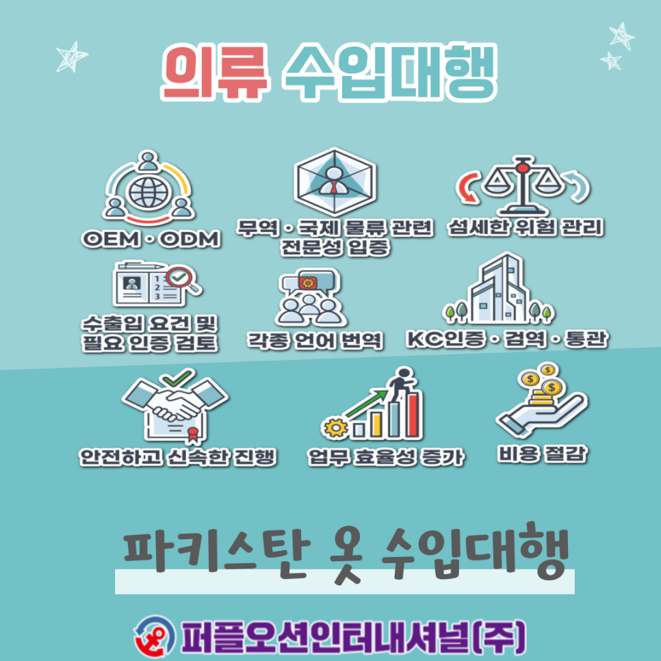 의류 수입대행/파키스탄 수입대행//퍼플오션인터내셔널(주)