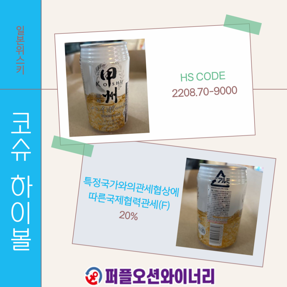 코슈 하이볼의 HS CODE는 2208.70-9000이고